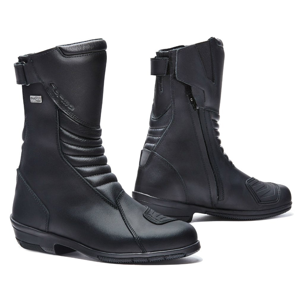 Motorcycle boots are a firmer fit to sneakers or work boots. For touring boots or urban shoes, you can usually order your regular shoe size.  For off-road boots, in most cases you need to order one size larger than your sneakers or work boots. To be sure, you can measure your total feet length against the boot's internal footbed measurement below, and your feet should be at least 3/4 inch (15-20mm)shorterthan the internal footbed. This measurement gives you the correct toe clearance for safety and comfort.