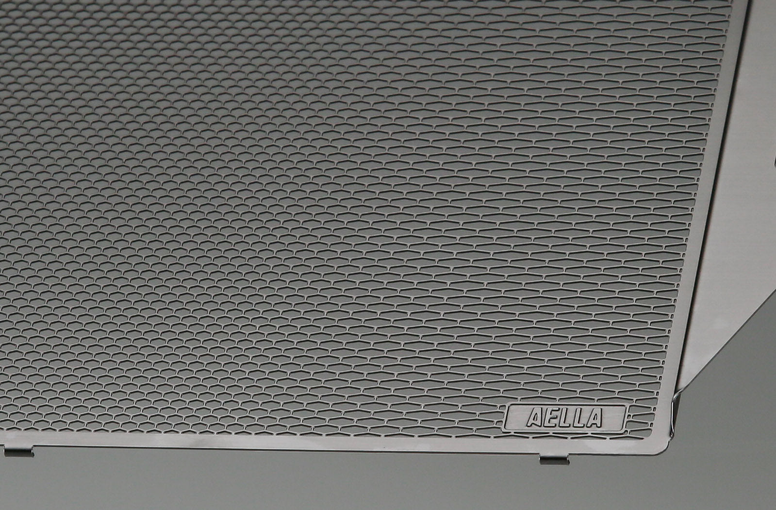 The stepless wave pattern (Aera unique) is alive. Considering both the cooling effect and the protection effect, in the central part where there are many windings of the front wheels fine ami-eyes with high protection effect, the part where the running wind of both sides hits well, coarse eyes to prevent the cooling effect from being impaired It arranges steplessly. Hairline treatment is applied to the surface so that fine scratches are not noticeable.