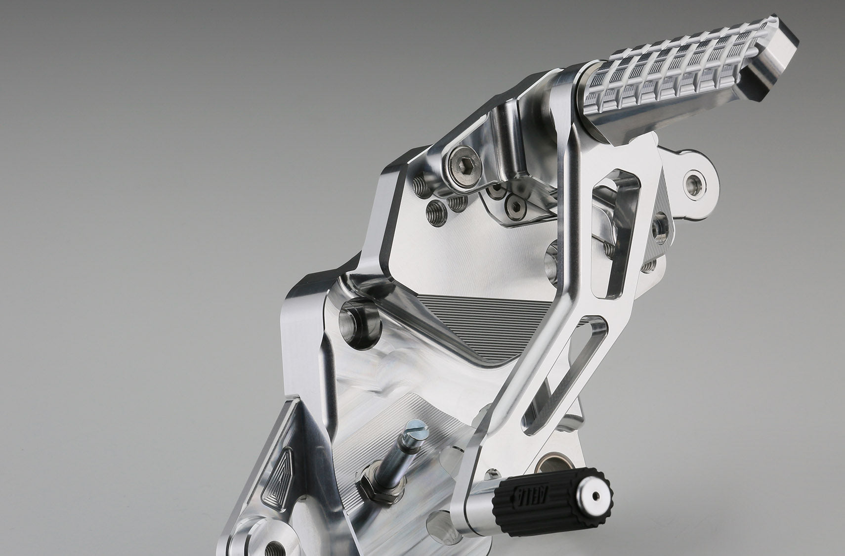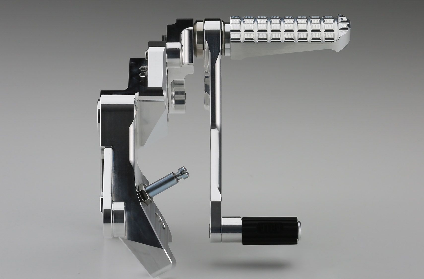 Double bearing structure for both pedal movable parts / Uses block pattern wide step bar / Uses L-shaped brake pedal that is both rigid and lightweight and does not easily get caught in the foot * This product does not support reverse Shift