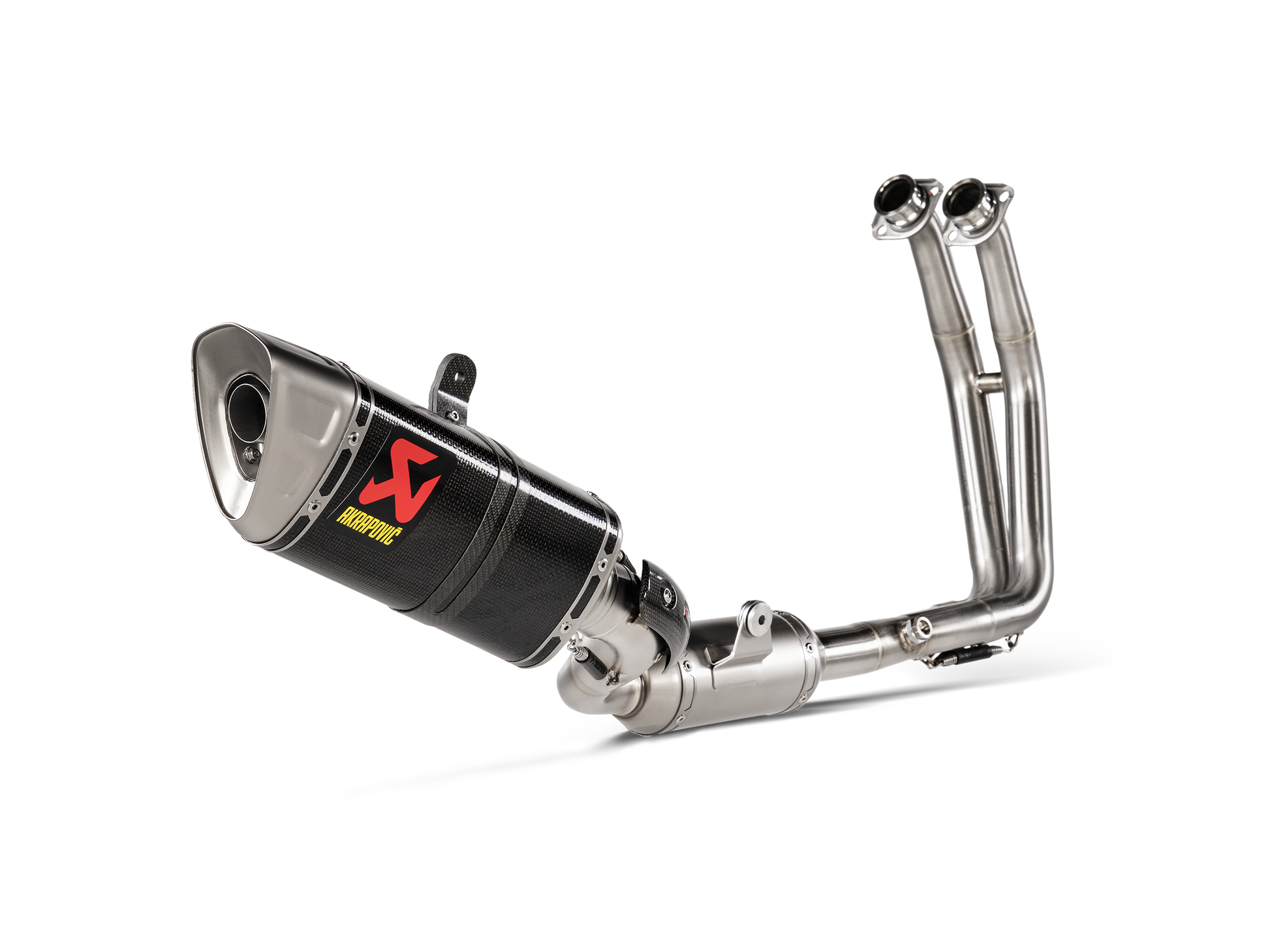 This is a completely new exhaust designed from scratch and constructed using lightweight race-proven materials. A carbon fiber muffler outer sleeve, heatshield, and clamp, a titanium end cap, stainless-steel header, resonator, and link pipe, and an optiona black-coated aluminize muffler bracket create a weight saving