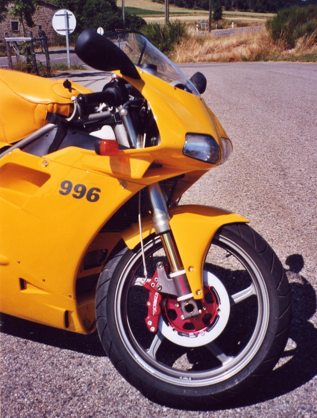 This extraordinary braking system comprising a pair of floating 230mm rotors per hub (hence the name 4D when you fit it to both sides of the wheel, you have 4 discs) offers slightly more braking surface than a single 320mm rotor, yet the ensemble pictured here weight 100grs less than a single Tokico 6 piston caliper and 320mm rotor from as Suzuki Hayabusa !
