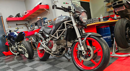 Anyhow, this a rare surviving 2002 Ducati Monster SENNA Edition in EXCELLENT condition, and she was custom built by us at BellissiMoto for our own riding pleasure.