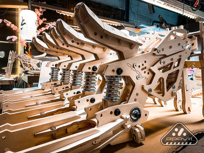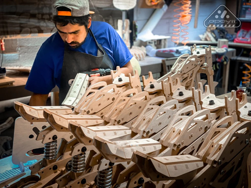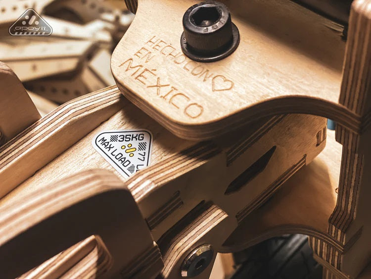 Every APOYII is carefully assembled with meticulous attention, delicacy and love in every detail in our workshop in Mexico City, by specialized wood workers and master craftsmen. They begin by selecting a very specific Birch plywood that our hi-tech CNC cutting process requires. In order to bring this bespoke balancing instrument that combines the best techniques of assembling two or more pieces of wood into a single mechanical element (joint). Inspired mainly of the Japanese Shiguchi technique, which is unique in the world, and something that is worth injecting into the early development of your small, hyper, curious, brave and young developing Homosapiens.