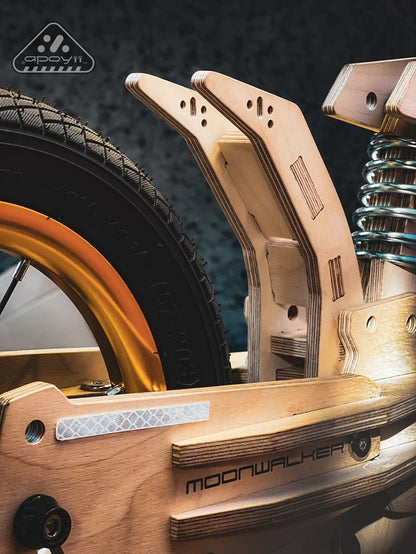 Foldable foot pegs allow solid standing while graciously gliding around most road obstacles and gives extra comfort, grip and cushioning during tricks and jumps, thanks to the adjustable Apoyii MoonWalker shock