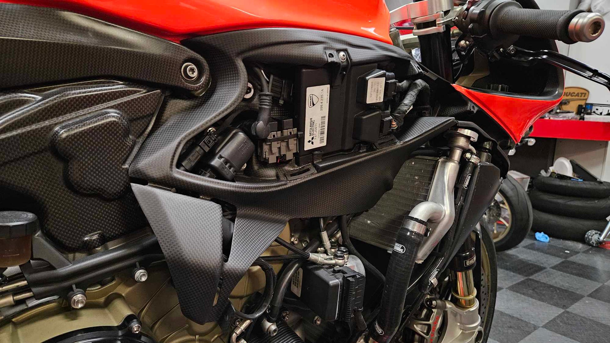 With an 1198cc Superquadro motor producing 200 HP and 98.8 lb-ft of torque engine (in stock configuration), before accounting for the Full Titanium Akrapovic Race Exhaust and Race ECU, this bike was a BEAST from the start.