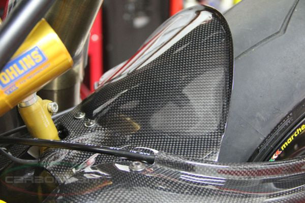 This Carbon fiber rear mudguard for the SBK SWINGARM available for the Ducati 848 / 1098 & 1198 models features a beautiful and unique style available only from Carbonvani!