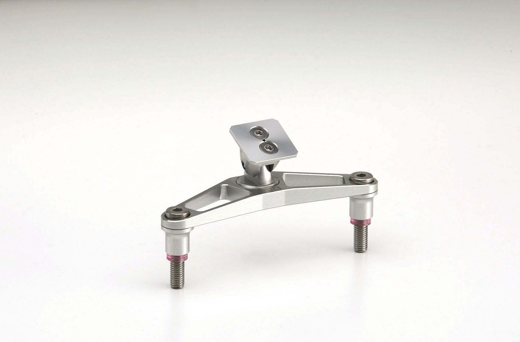 Tighten the high rigid aluminum scraping stay to the handle bracket and install it. We place emphasis on visibility by setting it to the center position. Because the exclusive pedestal is a movable type with hinge specification, you can adjust the angle of the navigation screen to a position that is easy to see. You can also adjust the position of the navigation screen by changing the mounting hole position of the dedicated pedestal itself.