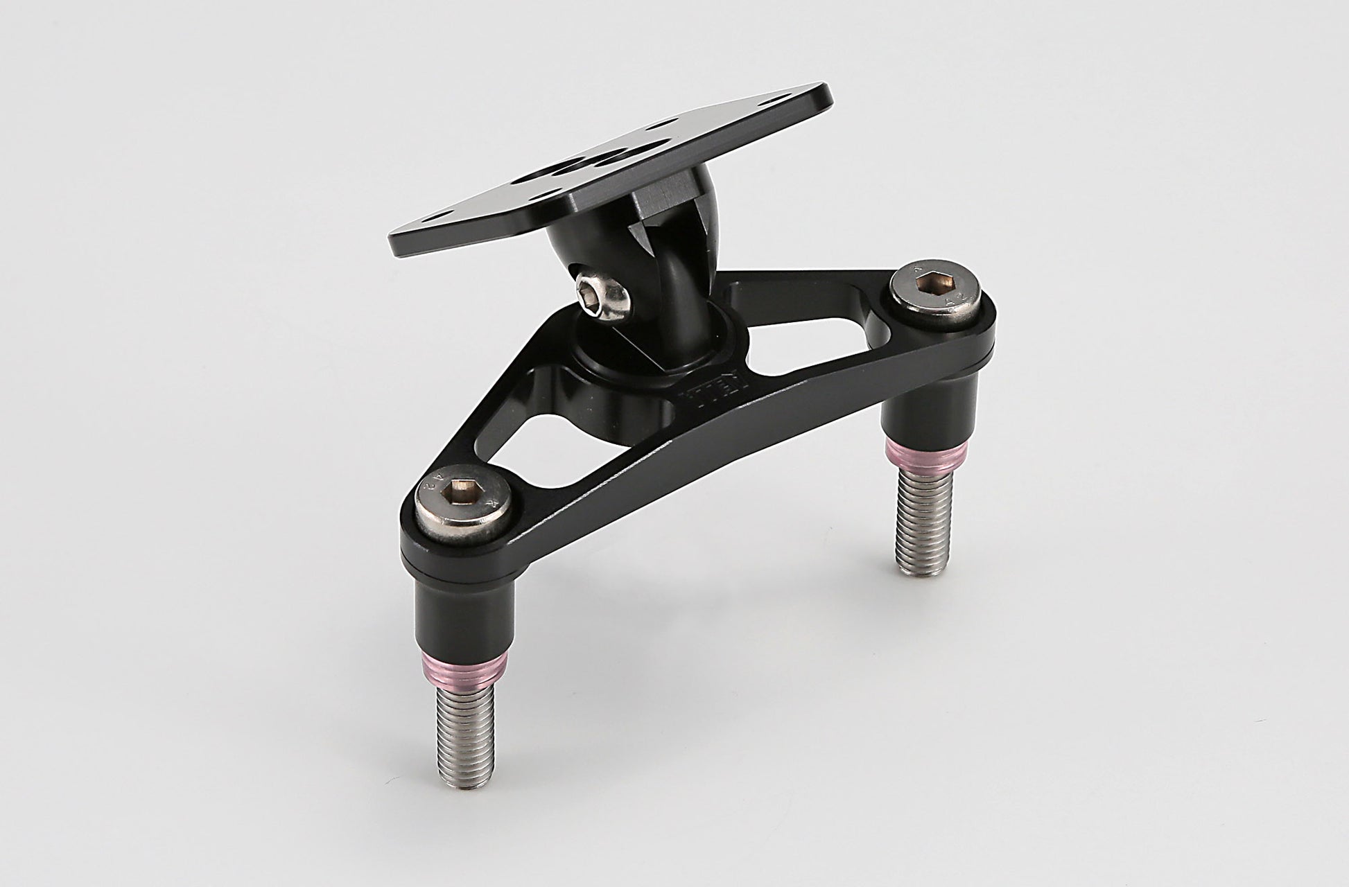 Tighten the high rigid aluminum scraping stay to the handle bracket and install it. We place emphasis on visibility by setting it to the center position. Because the exclusive pedestal is a movable type with hinge specification, you can adjust the angle of the navigation screen to a position that is easy to see. You can also adjust the position of the navigation screen by changing the mounting hole position of the dedicated pedestal itself.