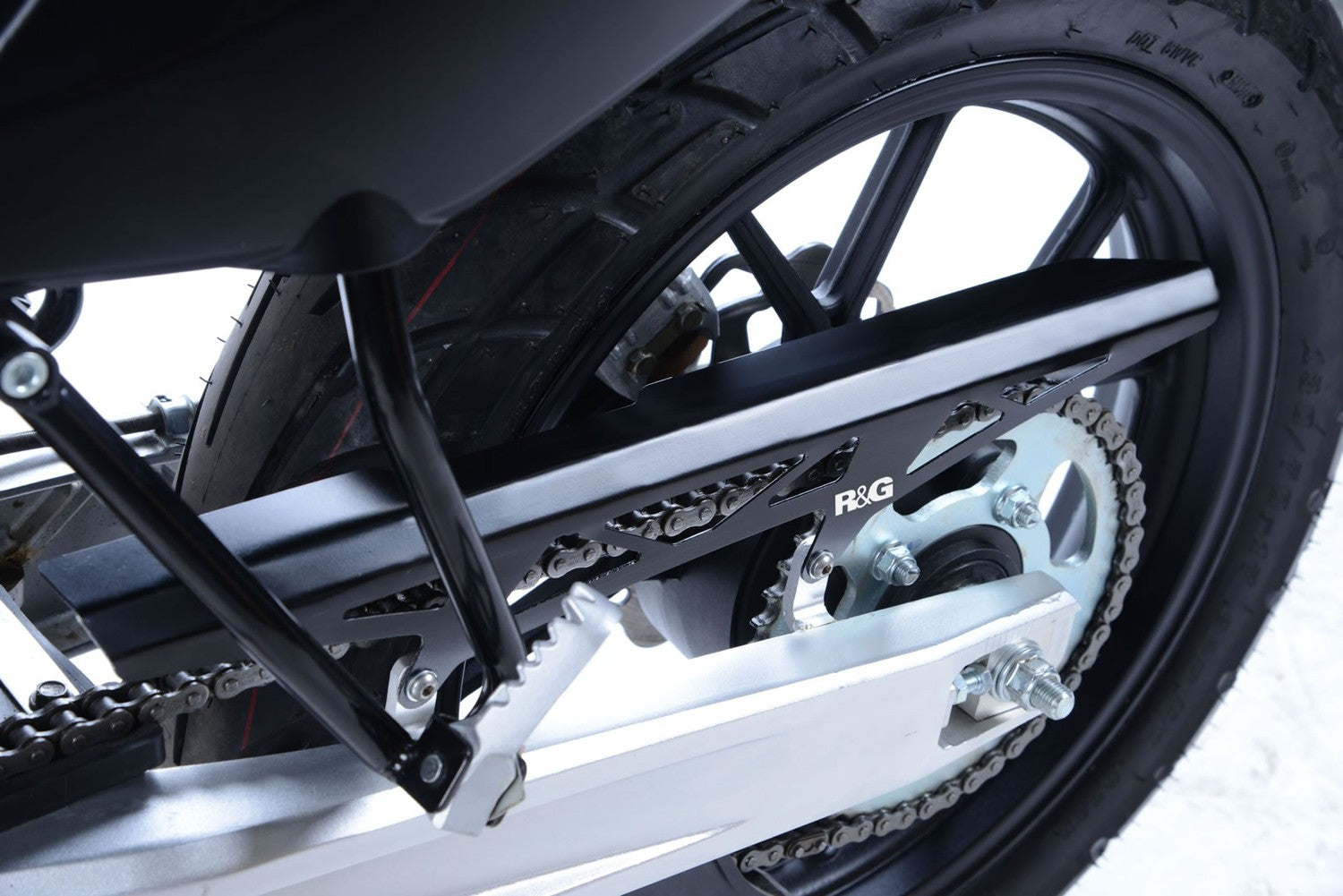 This R&G Chain Guard ensures the chain and sprocket is fully protected as well as preventing material (lube) flicking up off the chain and onto the tyres (or onto your bike wear!).