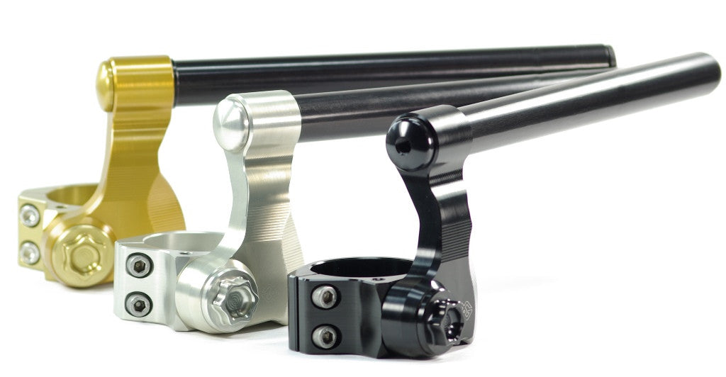 Get into position with the VB.Variobar Adjustable Clipons by Gilles Tooling! We understand that people come in all shapes and sizes, and that not everyone is the perfect fit for their motorcycle. The Gilles Tooling VB.Variobar Adjustable Clipons can tailor your motorcycles' ergonomics to you, reducing stress and fatigue on long rides and enabling a more enjoyable experience on the street or track.