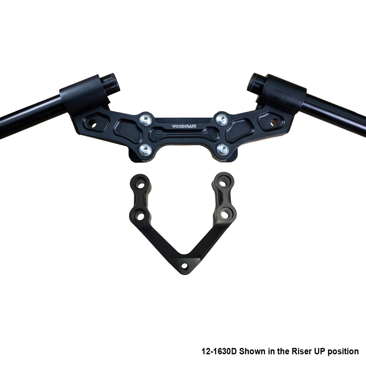This setup allows the use of multiple risers giving you the ability to custom tailor the bar height for optimum comfort.