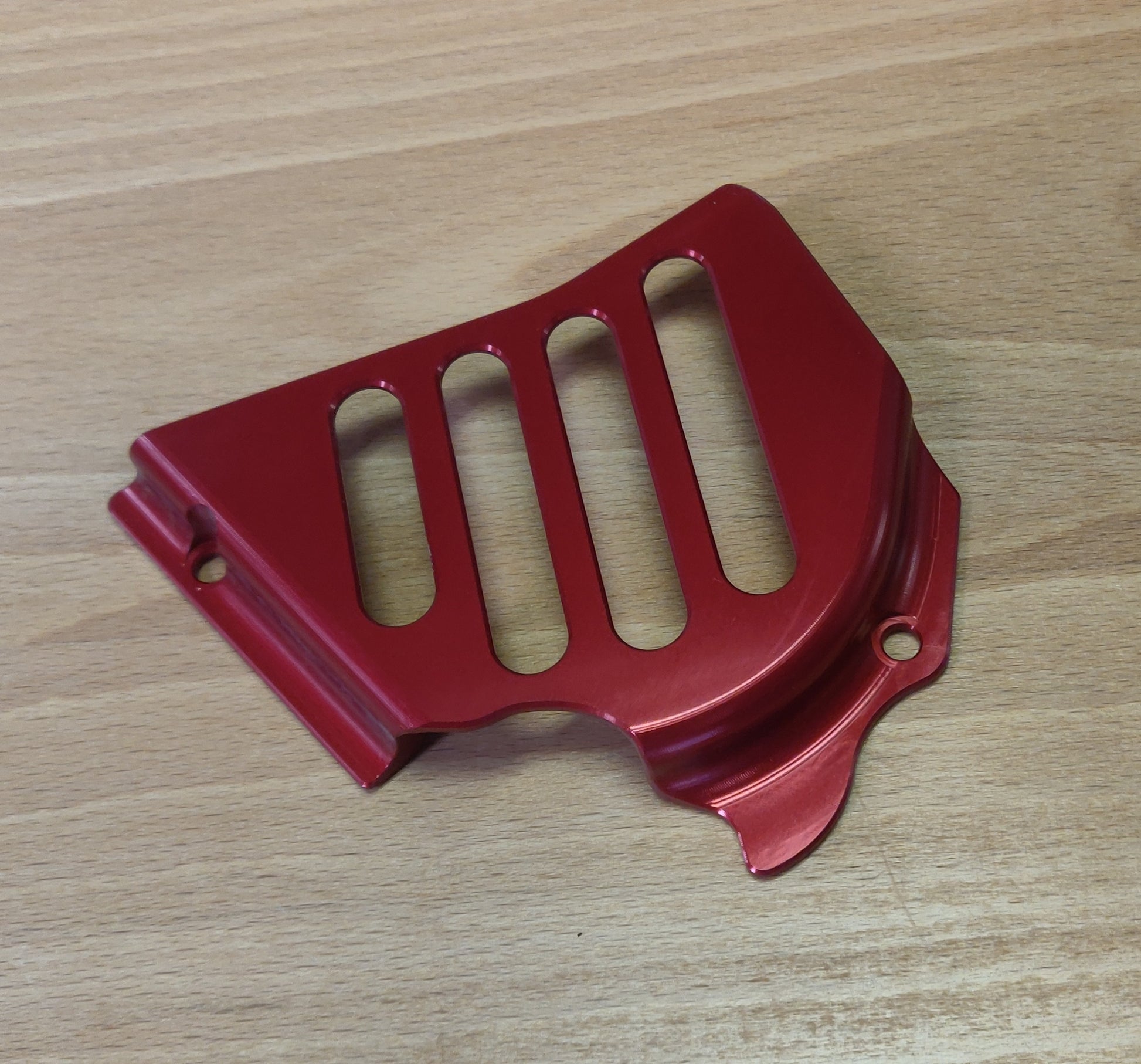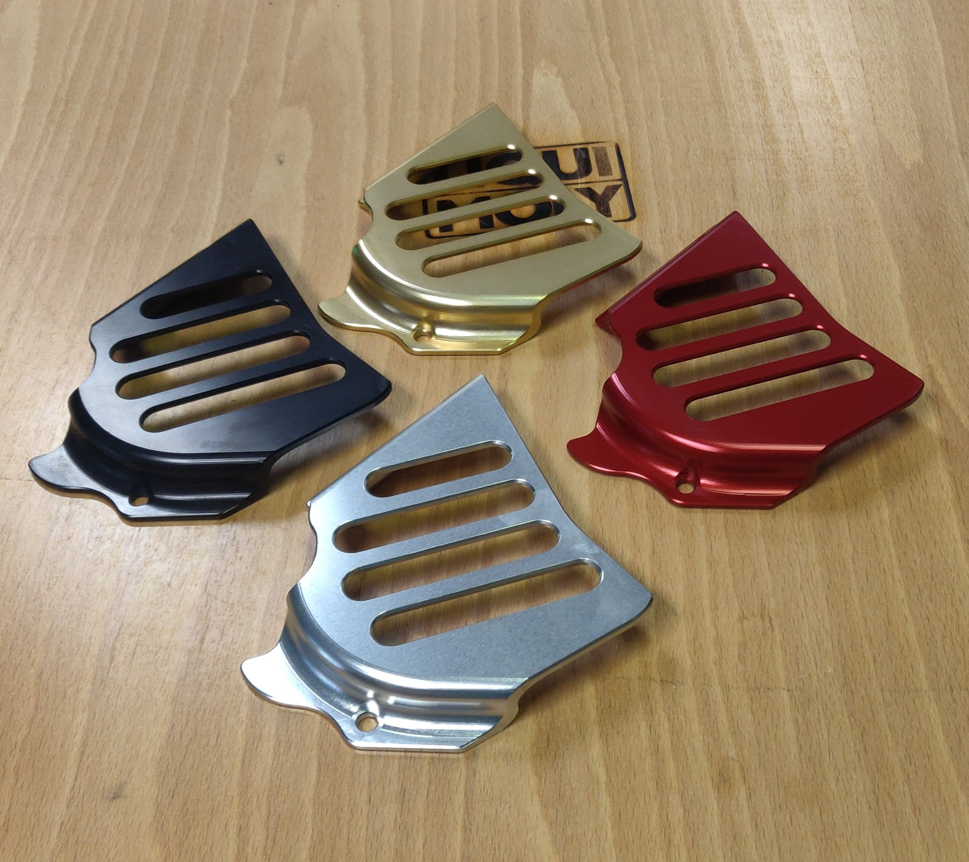 The TPO Corsa Sprocket Cover is cut from a solid block of aluminum. This sprocket cover is light, strong, and features a classic racing design that offers maximum protection.