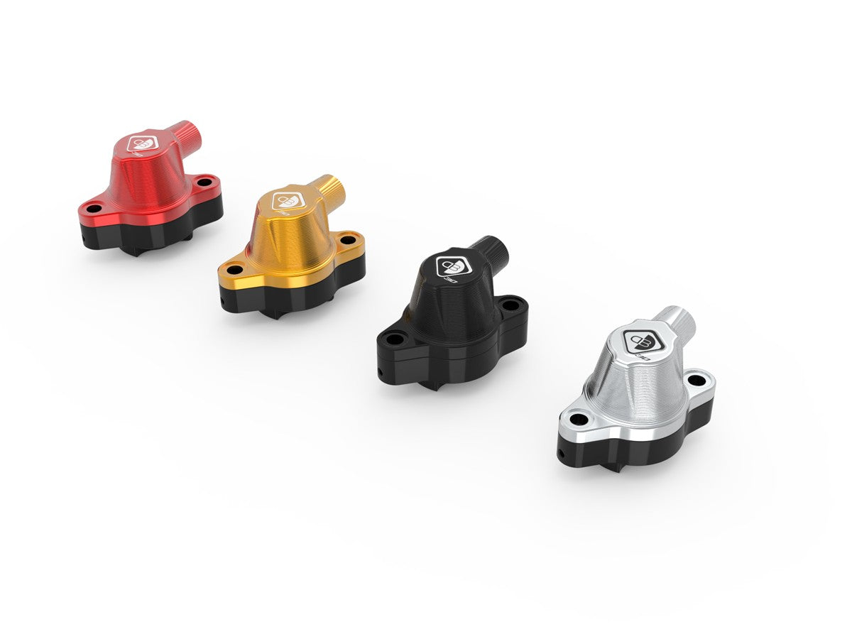 In addition to these technical improvements you get Ducabike's outstanding CNC machining from a from solid billet aluminum anodized in either Red, Gold, Black, or Niploy (nickel) finish, with contrast cuts at the end of the cylinder for a truly unique look!