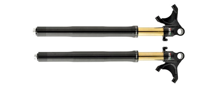 Bottom fork machined from solid in Aluminum alloy (Al 7075). Radial brake caliper 100 or 108 mm.