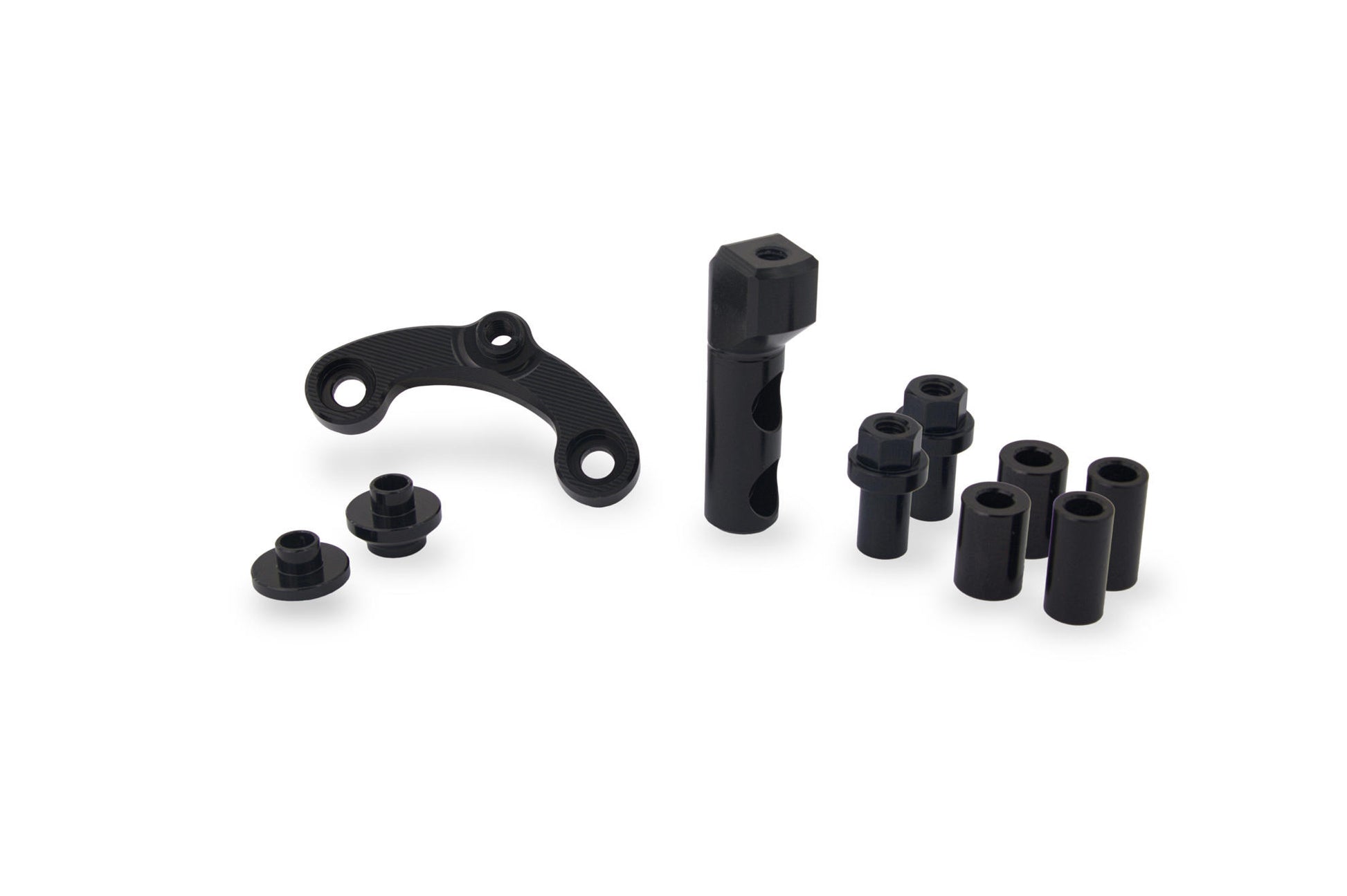 Ducati Hypermotard 950 and 950 SP steering damper mount kit made in light alloy, machined from solid and then anodized.