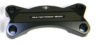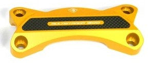 Time to add some style to the cockpit? Don't suffer by staring at the boring OEM handlebar clamp every time you ride...give your eyes the treat they deserve with this beautiful Billet Handlebar Clamp from Ducabike! Beautifully machined from billet aluminum with a carbon fiber inlay for a very unique, exclusive look. Available in anodized Red, Gold, Black or Silver.