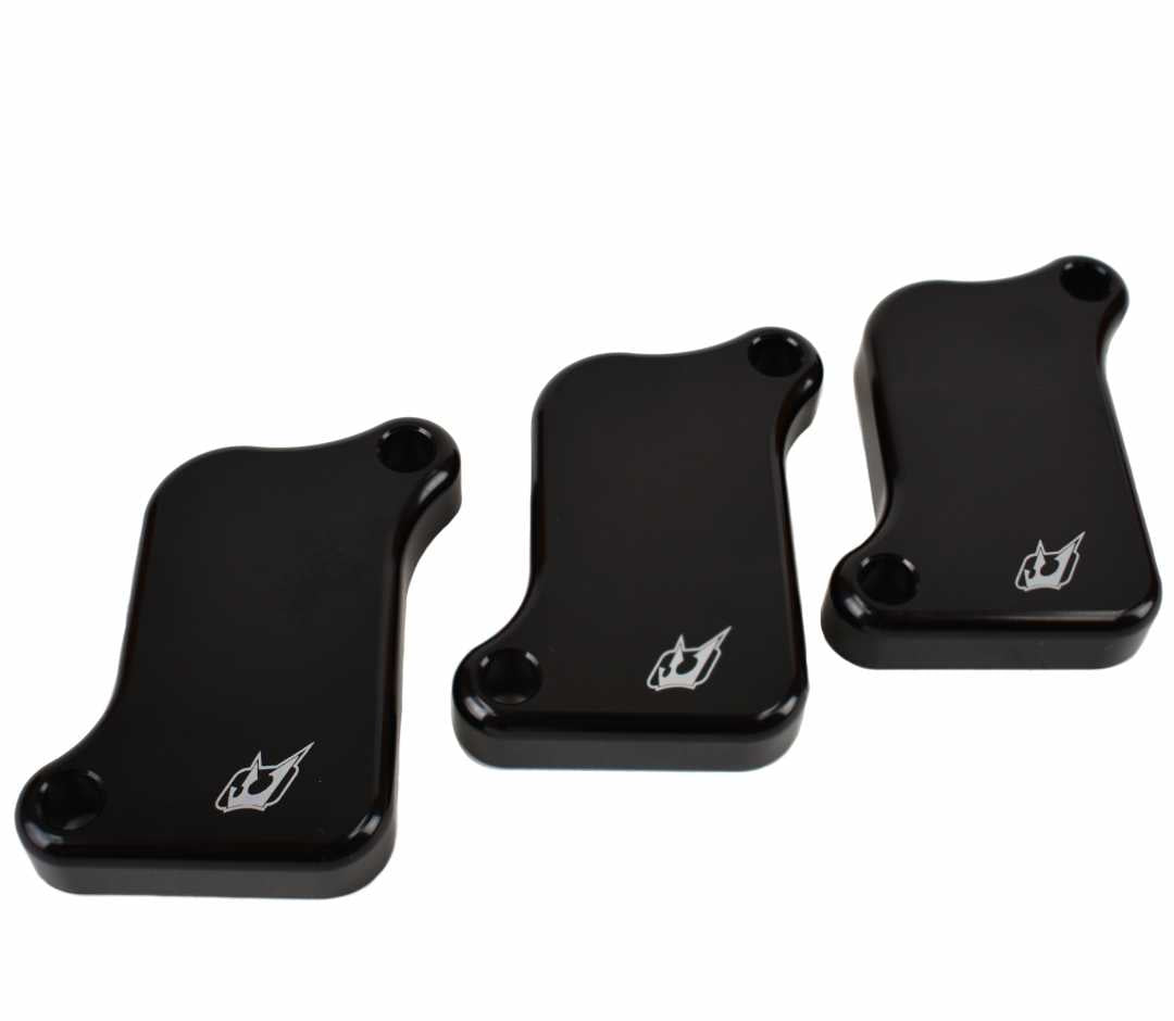 Driven's engine block off plates will stop the annoying and possibly damaging backfires from occurring while allowing you to remove a few pounds in associated valves and hoses from your bike.