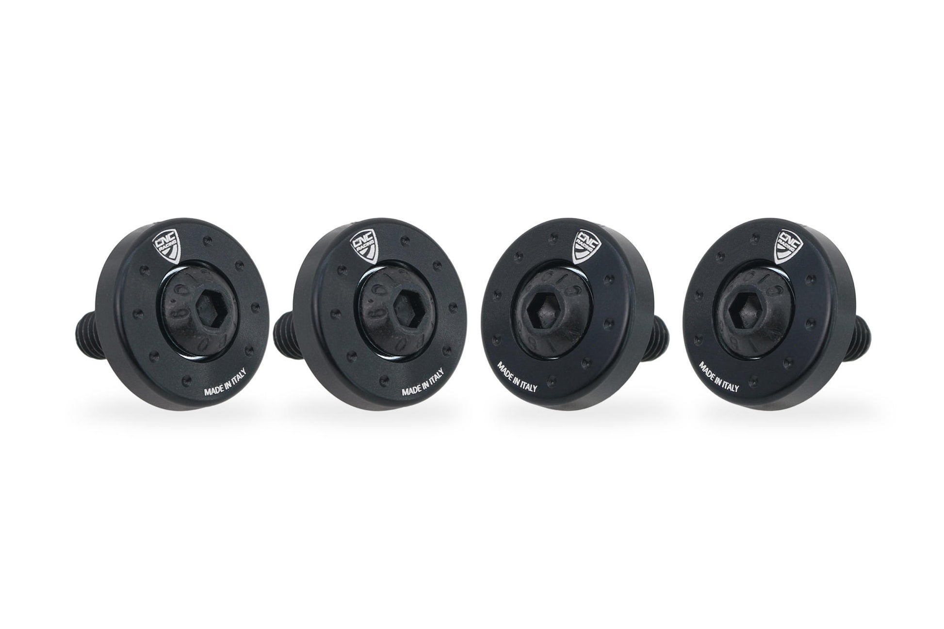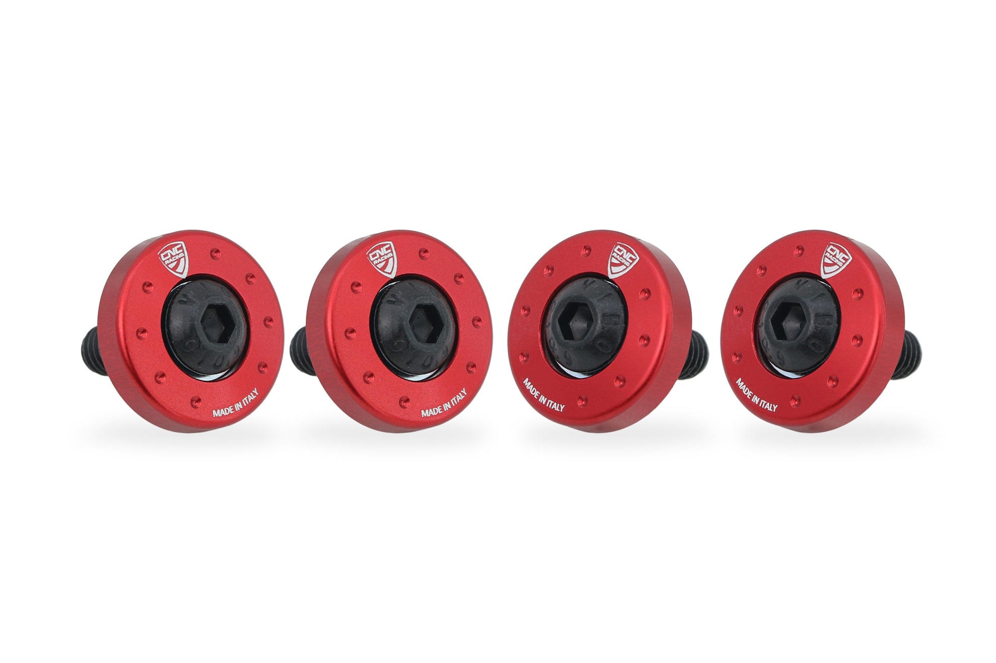 Screw collars for the cylinder head cover of Moto Guzzi made in light alloy, machined from solid and then anodized.