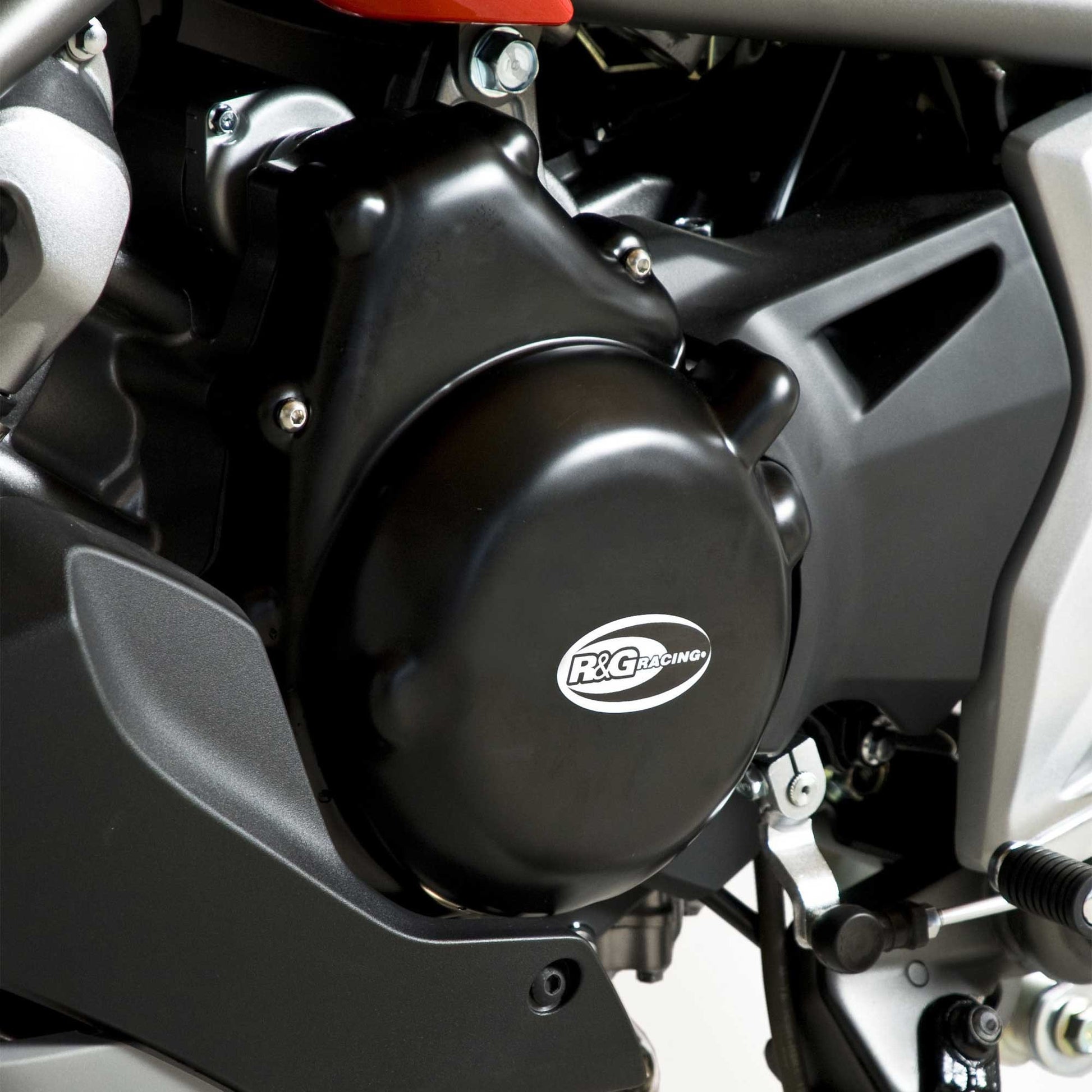 This R&G Racing Engine Case Cover is made from vacuum-formed thermoplastic and designed to fit the left hand side (LHS) crank case cover. Crafted from 4mm polypropylene for maximum ground clearance, durability and good looks, they compliment the R&G Crash Protectors perfectly. Lighter than the heavy protectors of the past, R&G Racing Engine Case Covers not only save weight, but can be quickly changed track side. The actual motorcycle engine case never has to be opened during install negating the need to replace gaskets or fluids. Simply remove a few bolts, snap the R&G Racing Engine Case Cover into place, and reinstall the original bolts.