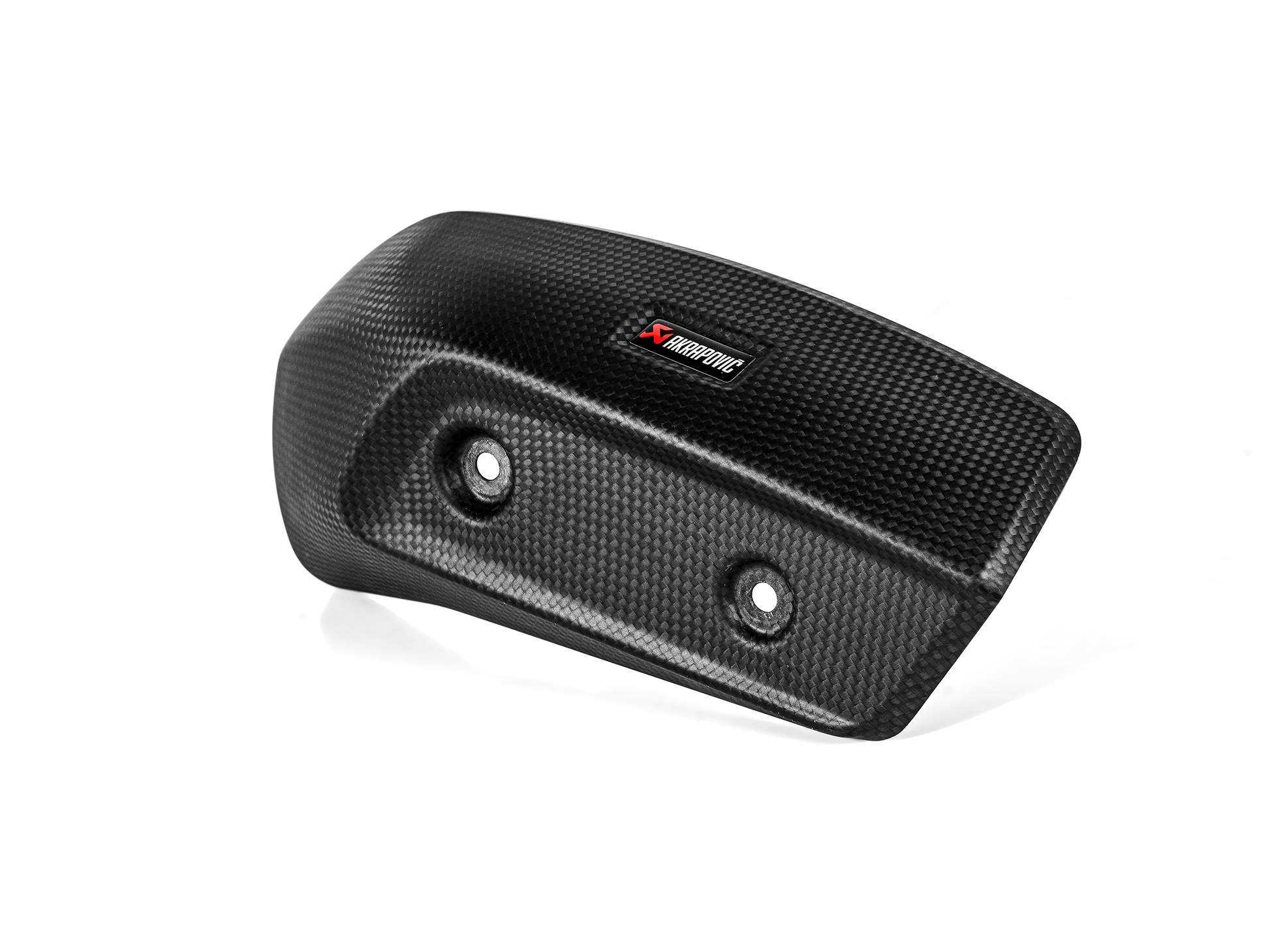 Akrapovič carbon fiber heat shield is designed to replace the stock heat shield. It can be used on Akrapovič or stock headers.