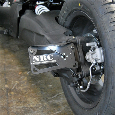 Custom designed 2 position fender eliminator side mount license plate for the Can Am Ryker. This kit eliminates the stock license plate fender, yet using the same mounting location allows you to ride with your license plate mounted horizontally OR vertically!