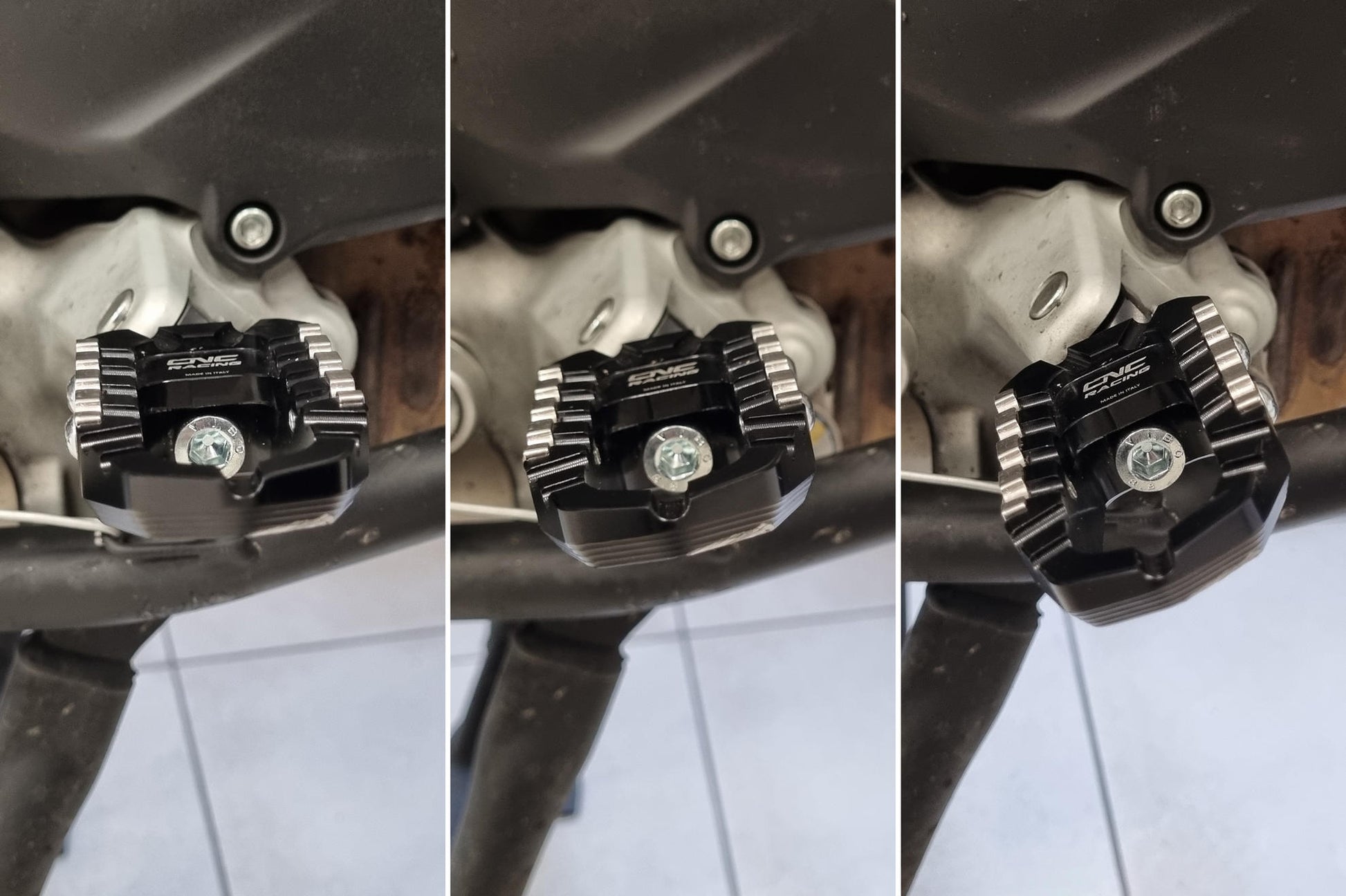 The kit consists of a pair of specific adapters for plug-and-play mounting and allows you to adjust the inclination of the footrest to three different angles: