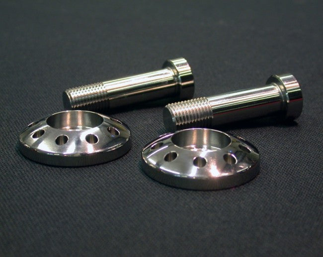 The kit is composed of 2 plugs that are fixed to the frame through expansion by means of conical bushing, metallic o-ring, and stainless steel screw on the Aluminum Plugs or a titanium screw on the Titanium Plugs.