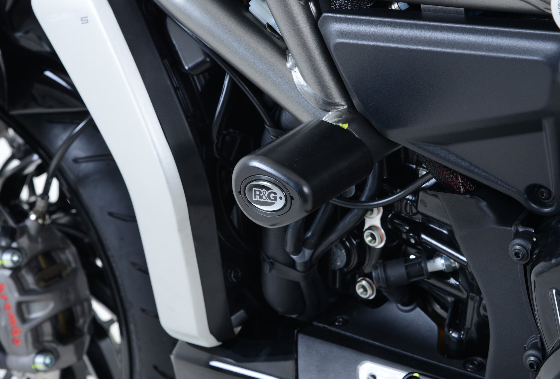 R&G aero style frame sliders for Ducati XDiavel & XDiavel S were made for those of us that don't want to mess with the perfect body of our motorcycle. This part is designed to be installed on your bike using a specially engineered bracket that moves the location of the mounting point away from your frame to existing holes, requiring "no cuts".  These teardrop shaped frame sliders feature a sleeker, more aero-dynamic design than the original round bobbins. Each fitted with a removable cap to hide the bobbin fittings. Crafted from polyethylene, the sliders can actually help to slow the momentum of your bike when in a slide. This accessory has made winners out of riders on both the road and the track.