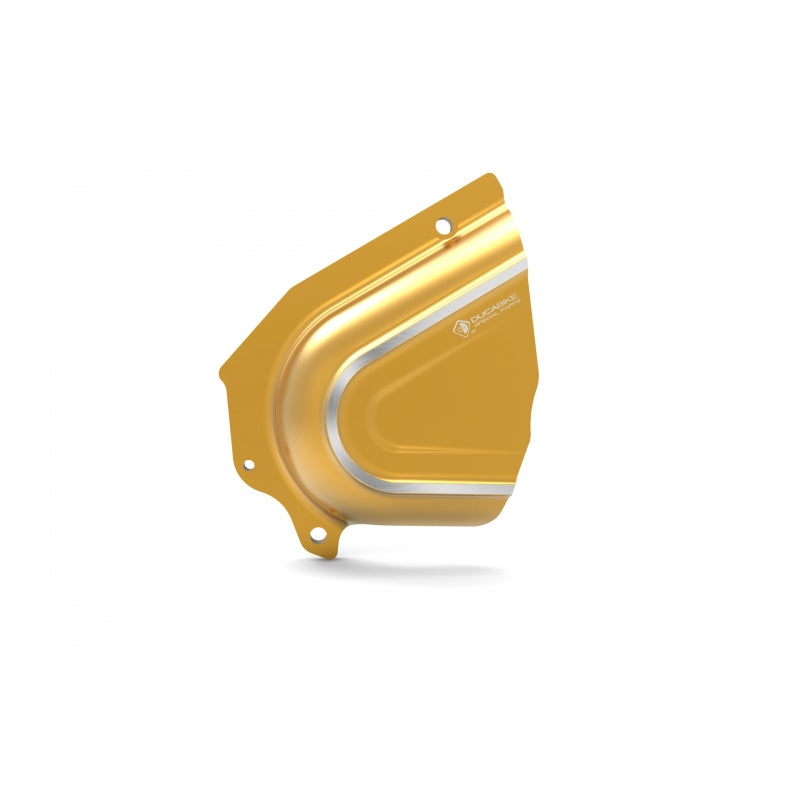 This Contrast Cut Sprocket Cover by Ducabike utilizes their 3D machining method to show off a much forgotten part of your Ducati! Made from billet aluminum and anodized in either Red, Gold, Black, or Silver.
