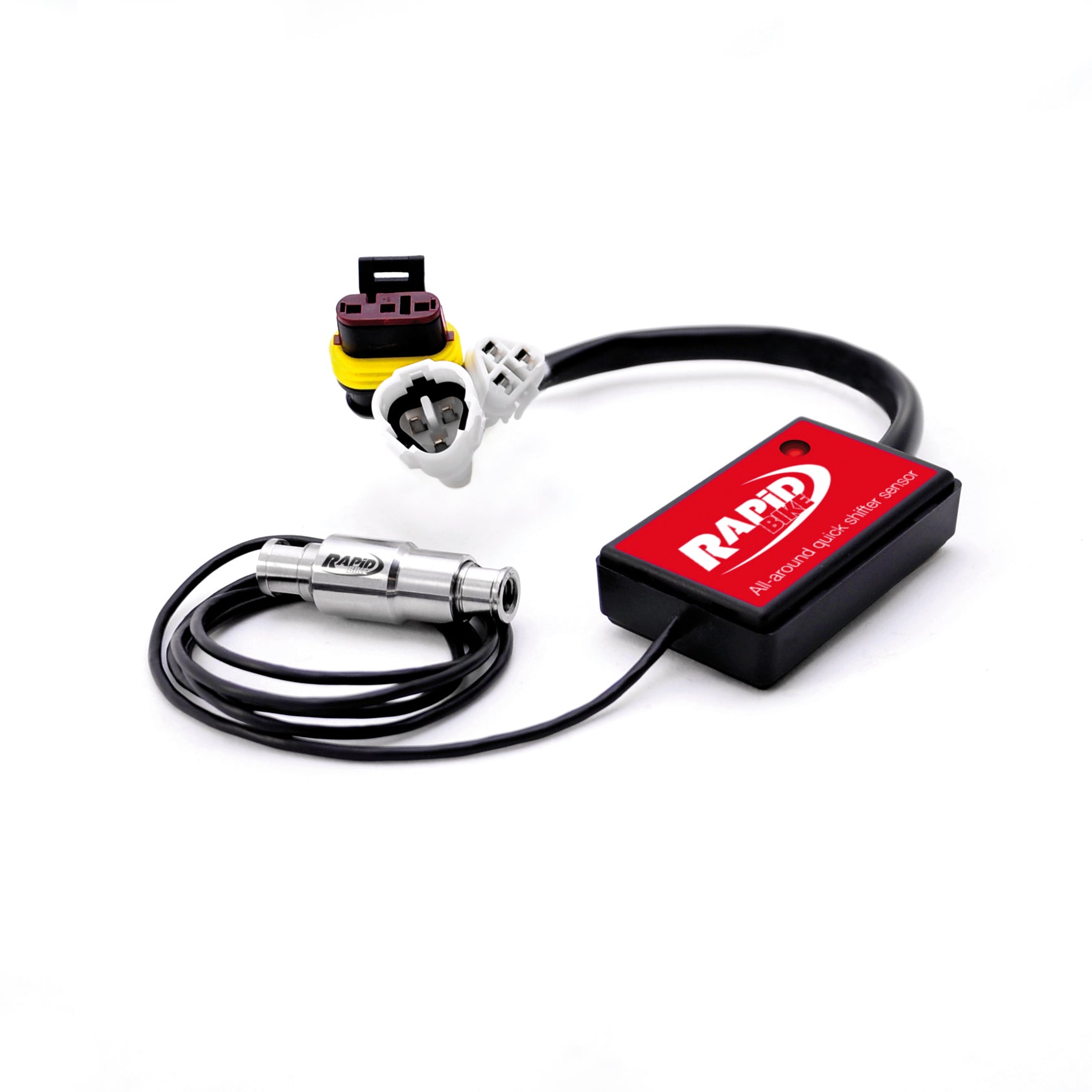 This QuickShifter is a Strain Gauge/Loadcell type quickshifter. It connects directly to the RapidBike wiring harness or to the pit-lane limiter switch F27-SWPIT (if already installed). It is universal application since it can work in both directions, push or pull (not in both directions at the same time).