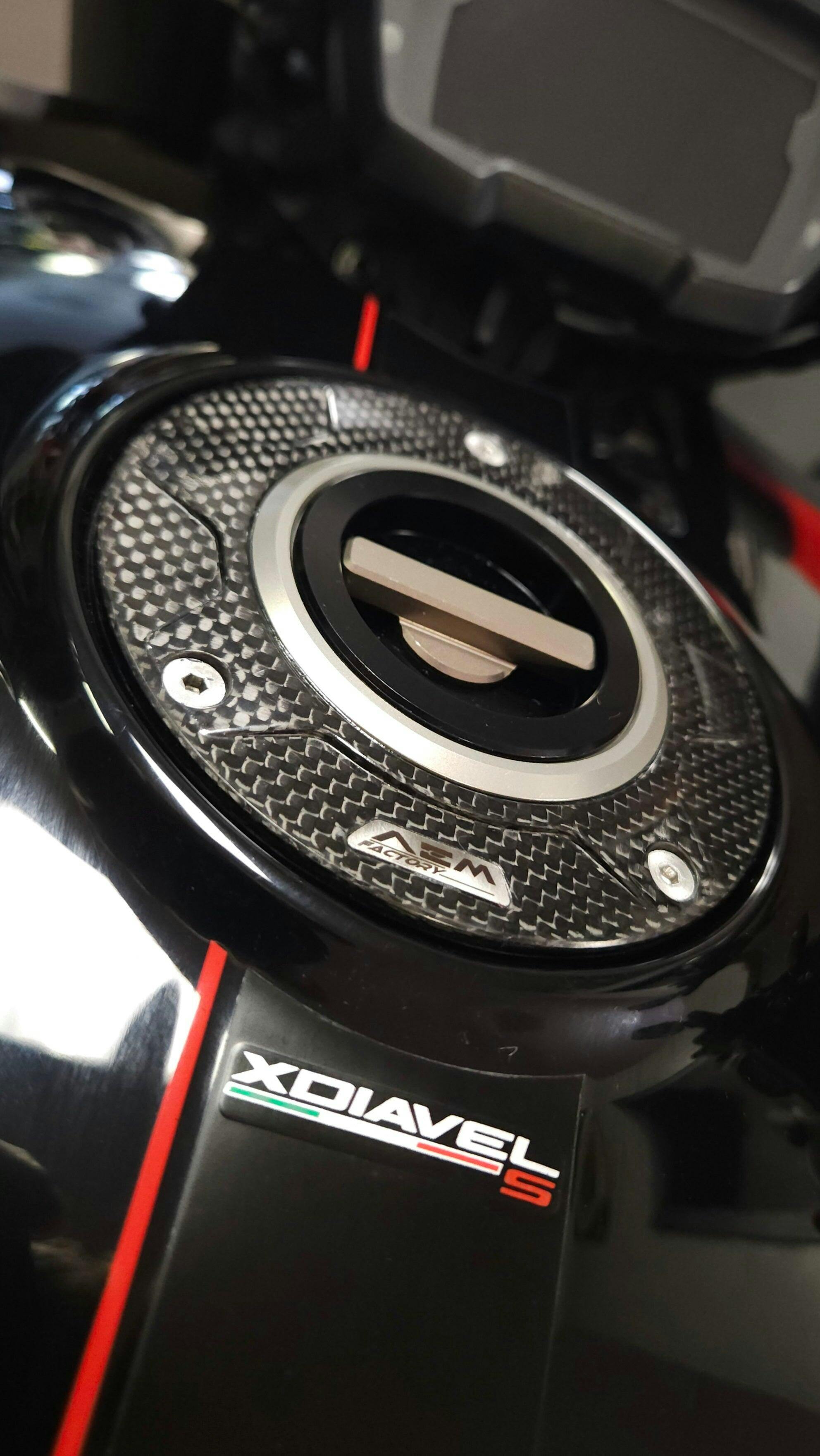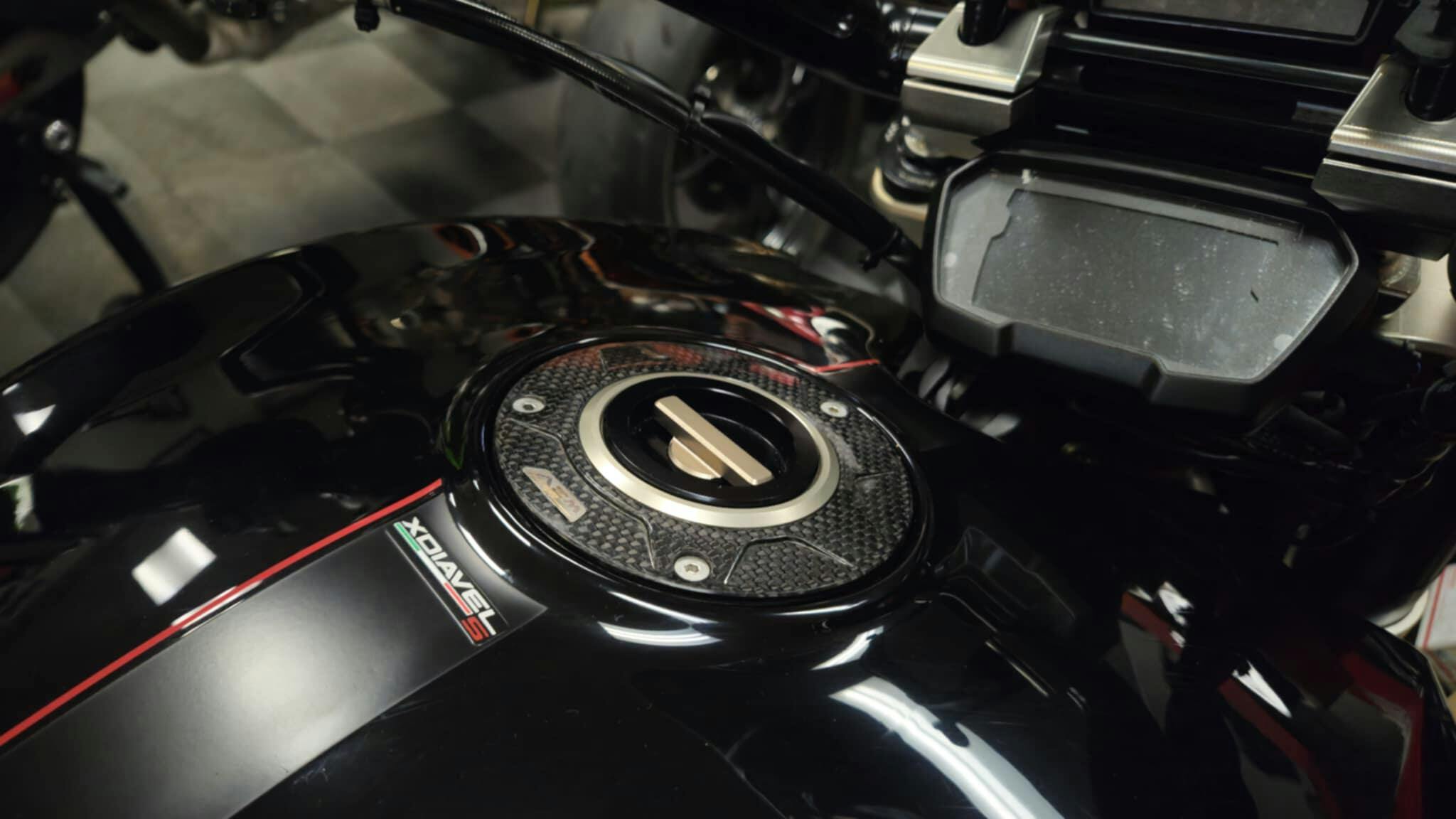 Fuel tank cap with a new carbon fiber flange, machined from billet