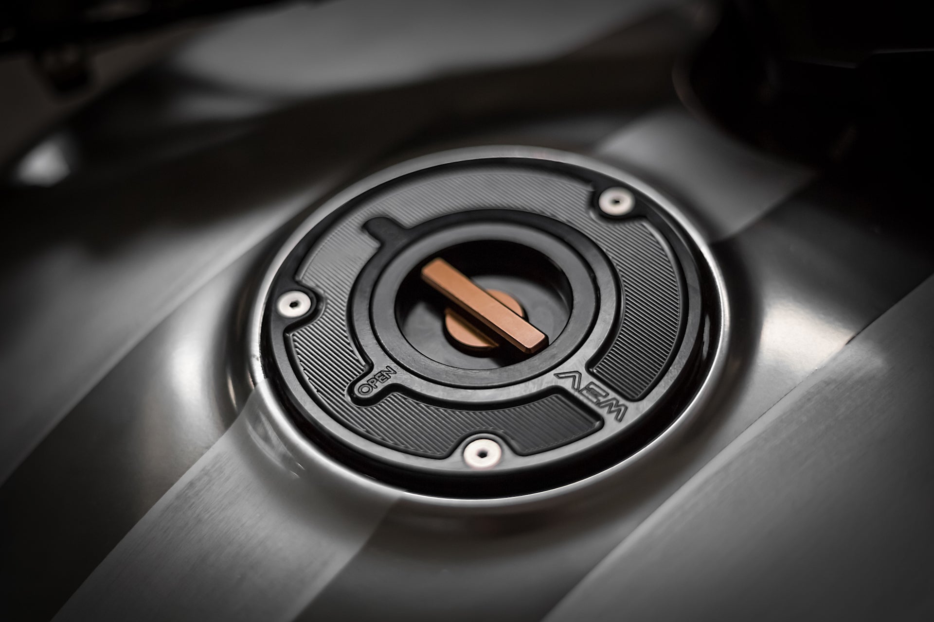 AEM FACTORY billet aluminum quick action fuel cap. A simple to operate beautiful cap, no key needed, just push and twist off.