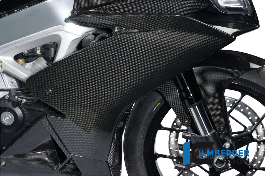 The side fairing in carbon for the Aprilia RSV 4 (2009-2012) is a direct replacement for the original component and contributes mainly to weight saving on the motorcycle (up to 70% less) and a higher stiffness of the parts. Like all of our carbon fibre parts, it was made according to the latest protocols and industry standards and can be considered to encompass all aspects of current 'best of industry' practice. The part is made completely out of pre-preg carbon fibre materials using an autoclave. As with all our carbon parts, we use a clear plastic coating that not only improves the appearance, but also protects the carbon fibre from scratching and has a unique UV resistance.