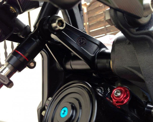 Motocorse rear suspension link is made of aluminum alloy (Ergal) and constructed through the use of CNC machines.