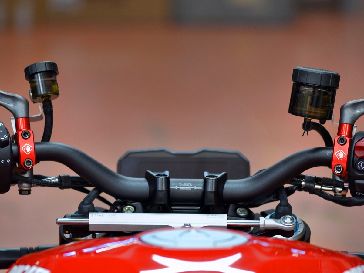 DBK Special Parts (Ducabike) Mirror Mount Handlebar Clamp for Brembo Semi-radial, RCS, and Performance Technology Master Cylinders - M8x1.25 - Right Hand Thread