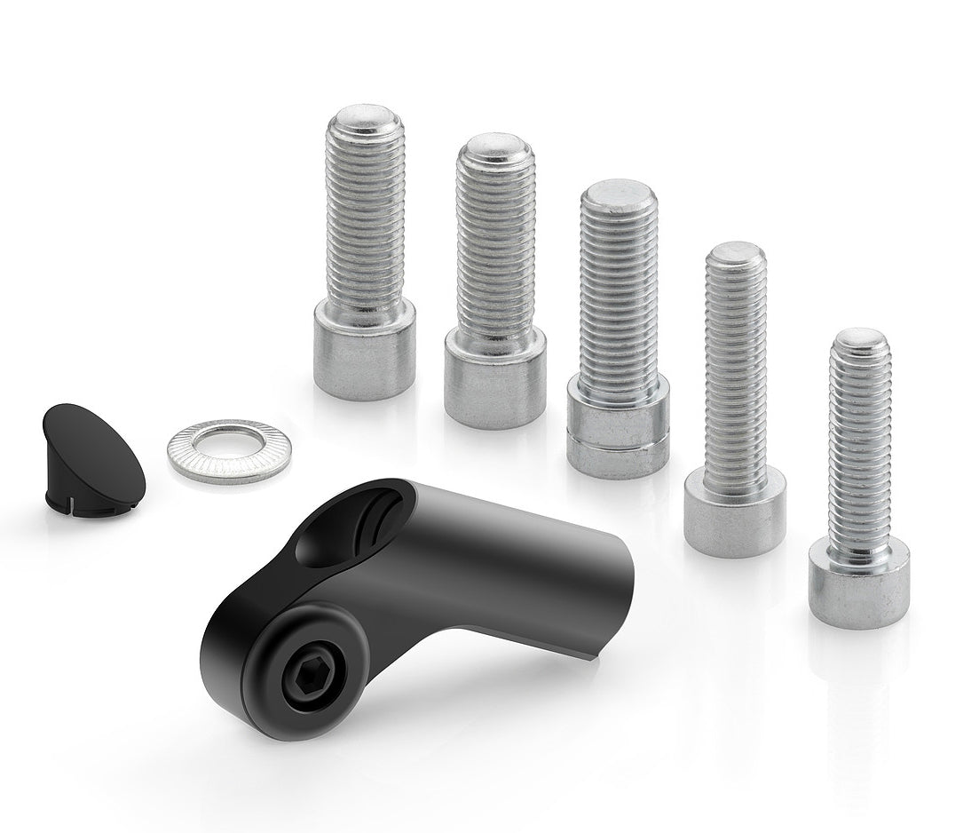 Created to allow Rizoma mirrors to mount to your motorcycle, they follow the lines of the mirror to ensure an uninterrupted design statement - nothing is left to chance. Machined from billet for exceptional robustness and long service life.