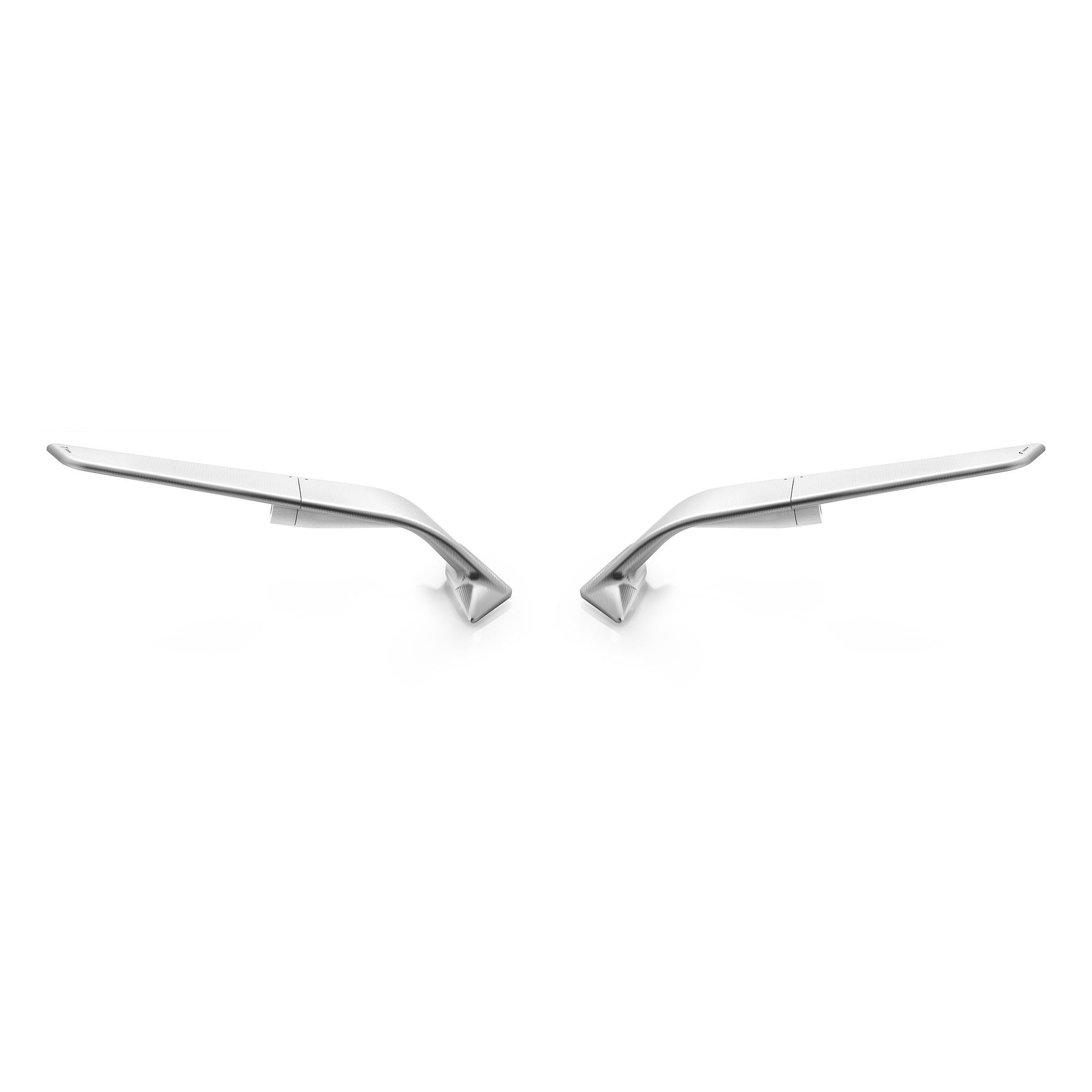 Thanks to a rotating system, by a simple movement, the two parts get aligned: in closed position the mirror becomes an aerodynamic foil. While the mirror glass holder is always the same, the fixed component is designed  for Individual supersport bikes for which Stealth was developed, looking for the best solution to match the relative aerodynamic results.