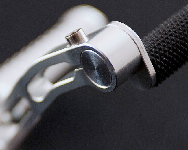 The knurled brake/shift eccentric pin is made of black Delrin.
