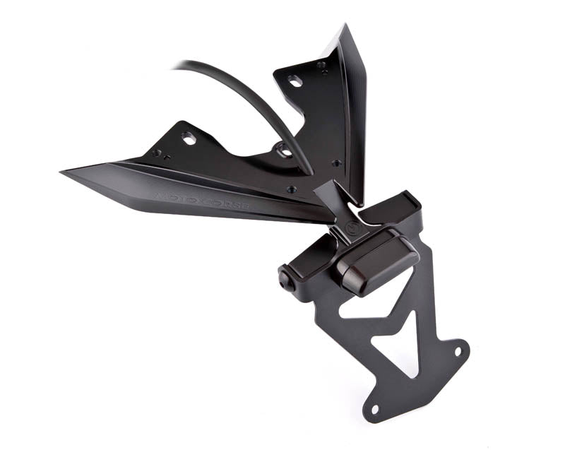 The Motocorse Billet Plate mount kit / Fender eliminator gets rid of that Ugly Plastic Fender/Mudflap on your tire, and moves the plate mount to the tail in their usual Beautiful Billet Fashion! Available With or With out their Billet Synecro LED Turn signals, its a Plug and Play kit that is sure to get you noticed!