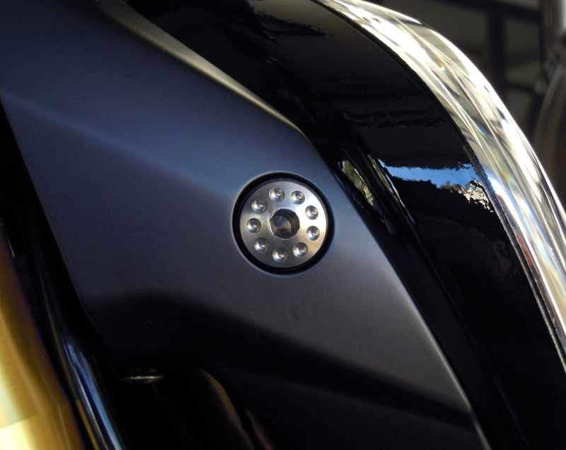 Motocorse head light fixing bolts are made of Titanium and constructed through the use of CNC machines. The kit is composed of 2 bolts that are perfect substitutes for the original head light fixing bolts.