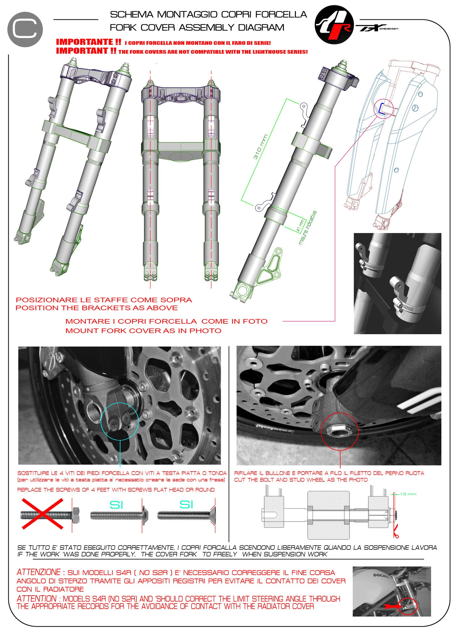 - If fitting the Belly Pan MR7 or Side Panels MR5 to the S4RS/ S4RT, you will have to Modify (cut) them to fit the larger oil cooler.