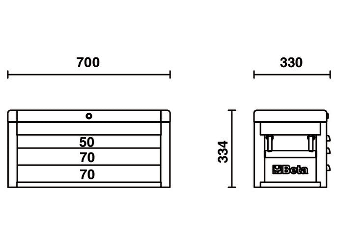 Three drawers with ballbearing slides1 drawer 50mm high - 2 drawers 70mm highFront centralized safety lockretractable side handles for ease of handlingfour-corner post frame construction protects from damageTop storage under hinged lid