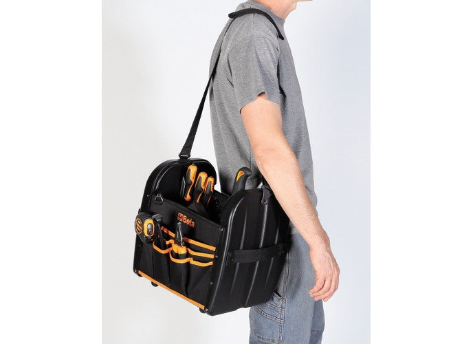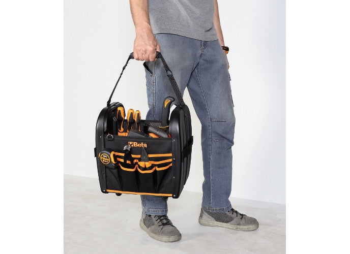 • Internal and external pockets and elastic tool holder