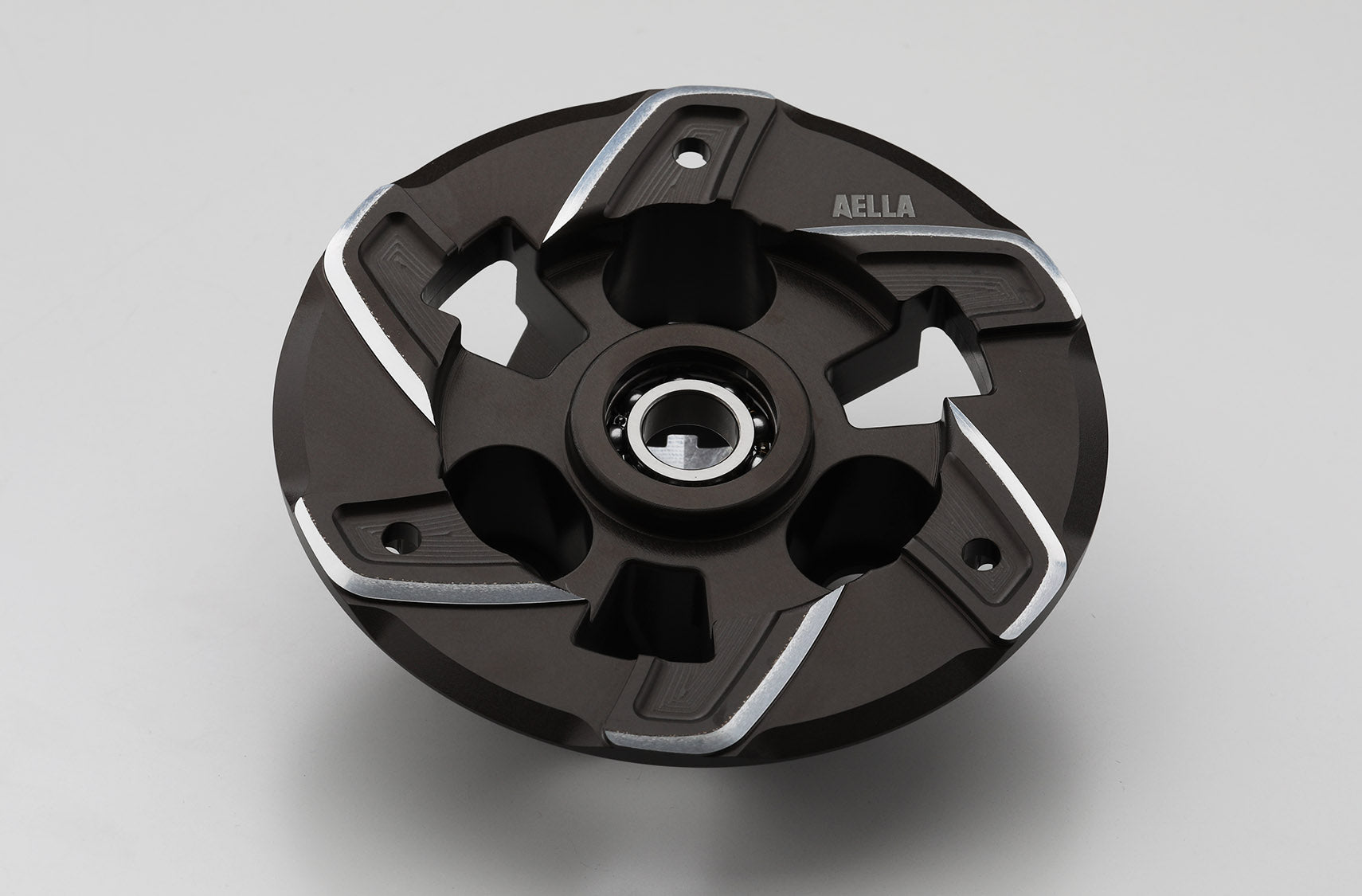 This Amazingly Machined and Beautiful Wet Clutch Pressure Plate From Aella has a unique, Fin Design that looks as Good When Stopped as it does when Spinning and will really make your bike stand out! Machined from Billet aluminum and anodized in Black, Red, or Kashima Brown and it looks way better than the ugly cast OEM one. A must have if you buy the Clear Clutch cover