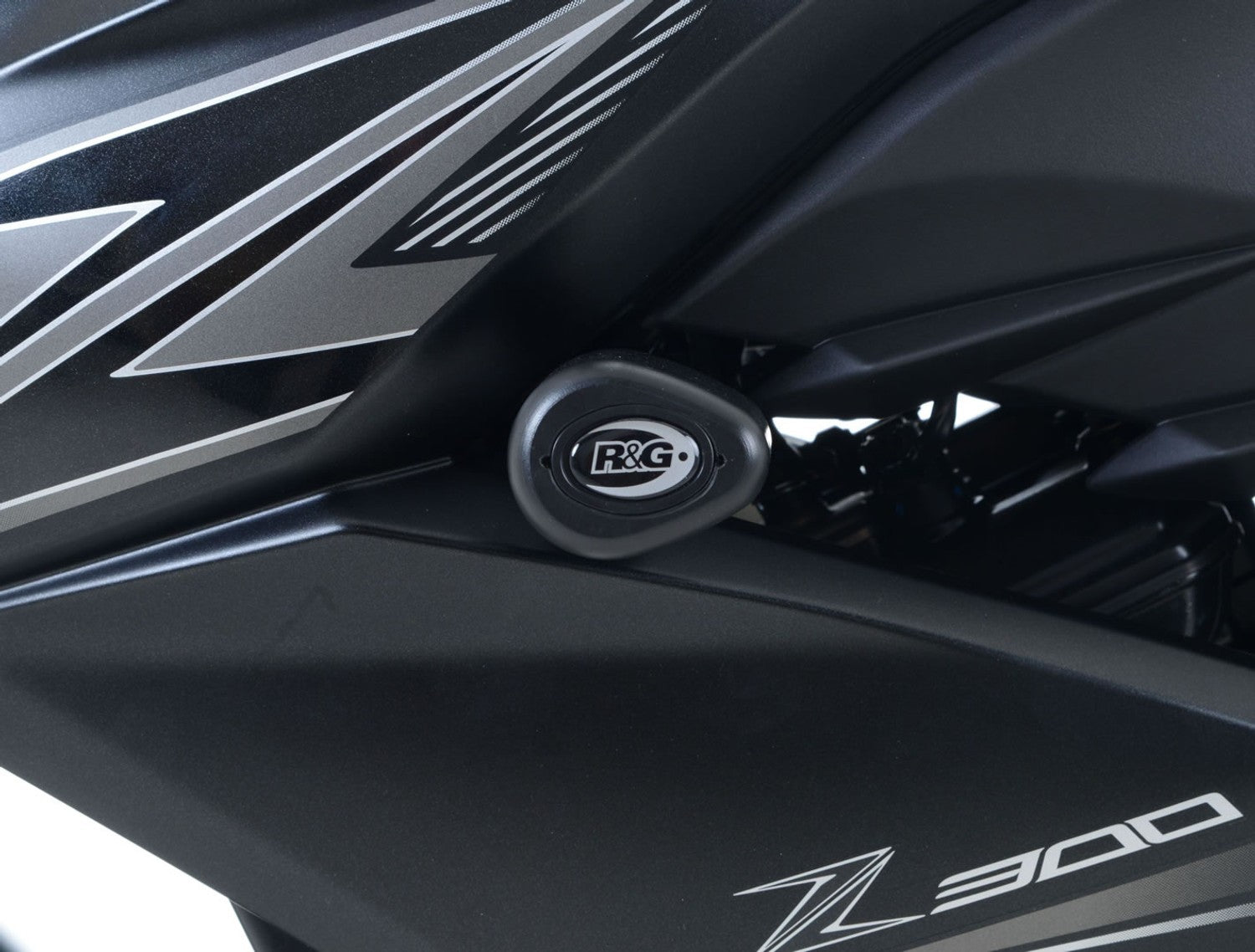 R&G Aero Crash Protectors feature our stylish, aerodynamic Aero Bobbins and are available in Black. Suitable for the Kawasaki Z250 '13-'18 / Z300 '15-'18 models. Offering core motorcycle protection, keeping the frame, engine and other critical components off the ground in the event of a crash or slide.
