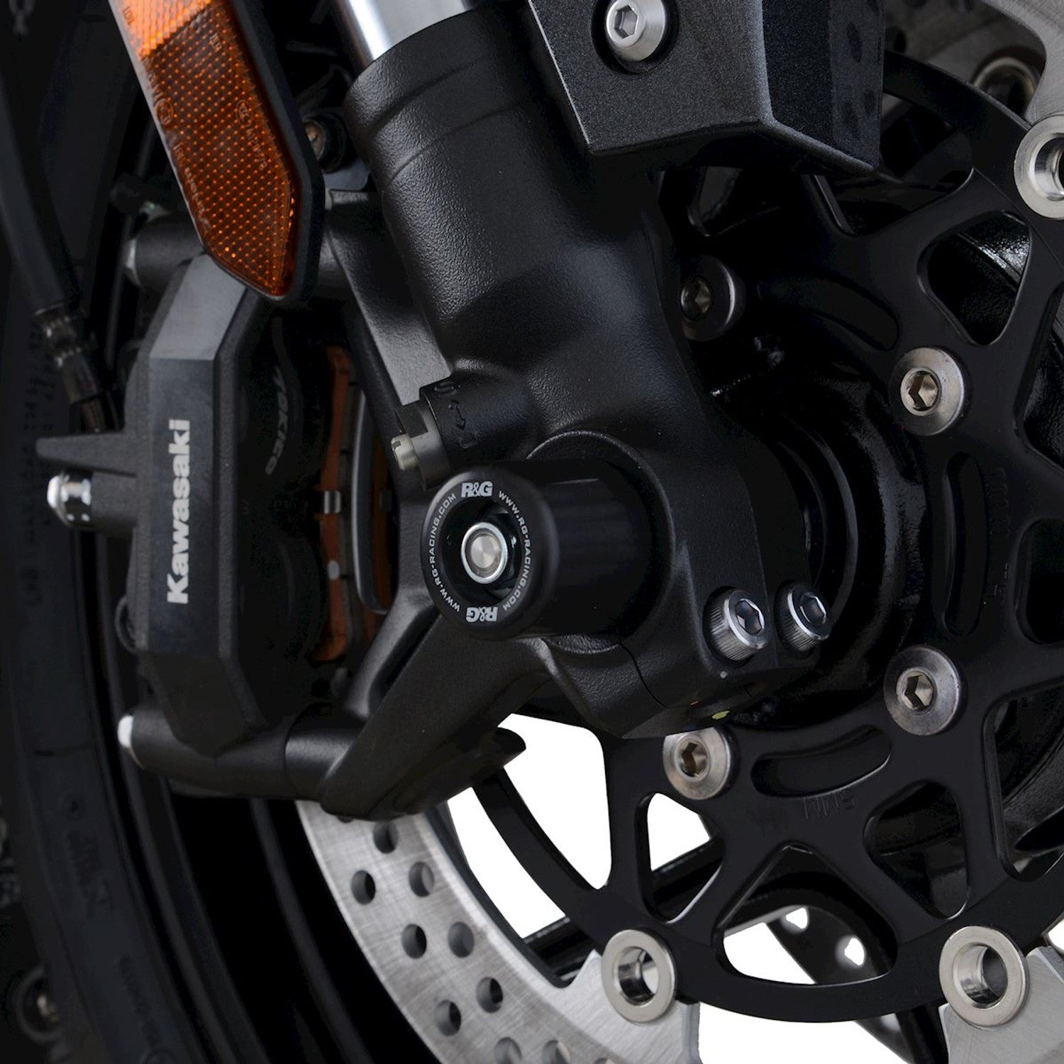 These fork protectors are suitable for the Kawasaki Ninja 1000SX '20-'22 model. Easy to install, they help to eliminate damage to the front forks, fork bottoms and brake callipers during a crash or drop.