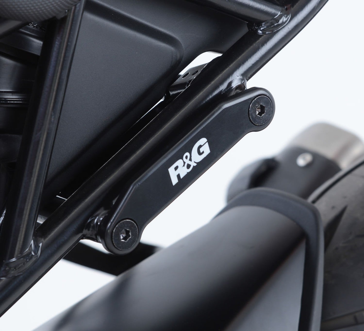 Once you have removed the pillion footrests, fill the void left behind and cover those otherwise exposed holes in the sub-frame with an R&G blanking plate.