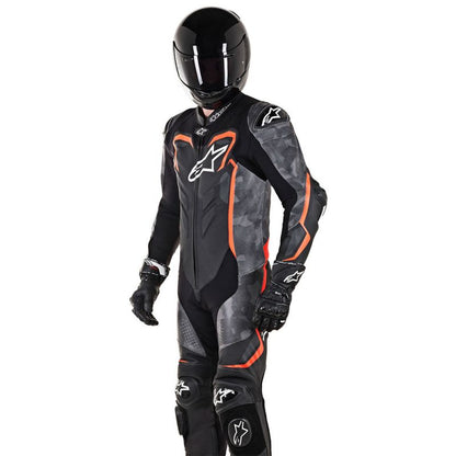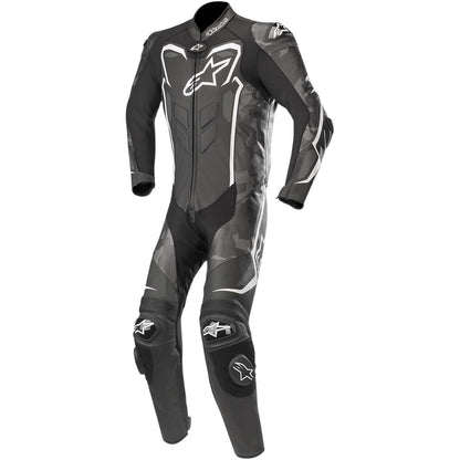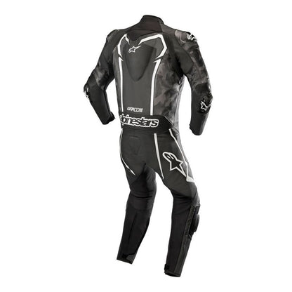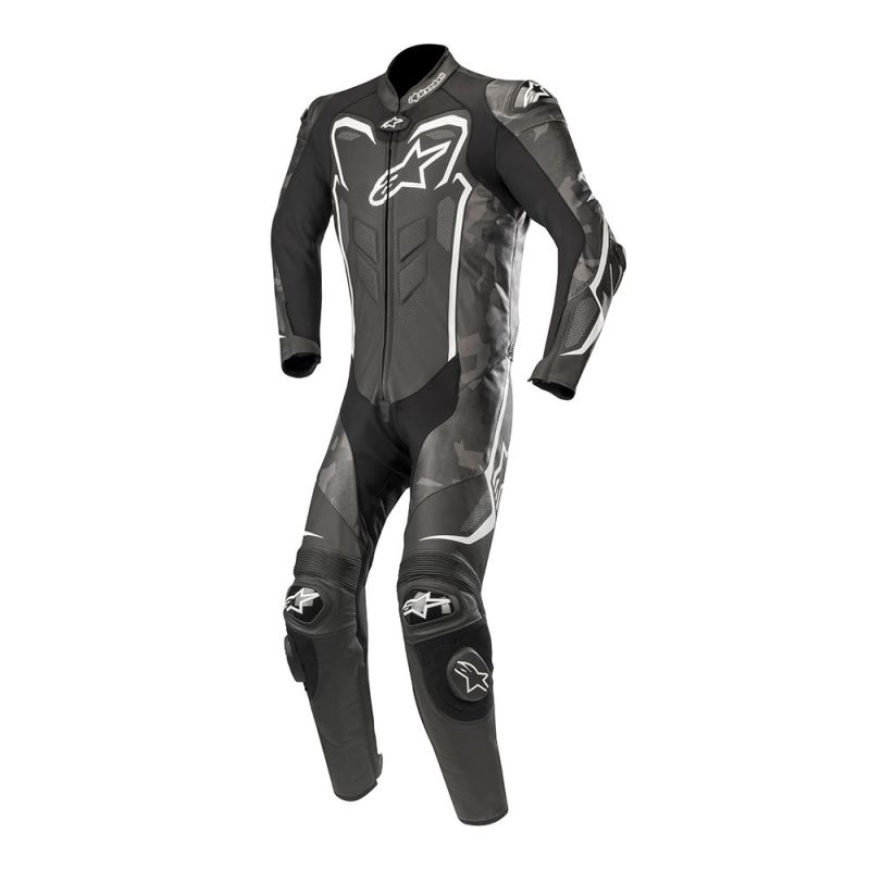 A unique digital camouflage designed graphic for a racing leather suit with class-leading protection and innovative technical features such as extensive stretch paneling, aerodynamic hump and calf expansion gussets. The GP Plus Camo Leather Suit has been meticulously developed to improve anatomical performance and comfort. CE certified, the GP Plus Camo Leather Suit is perfectly suited to track day riding and racing.