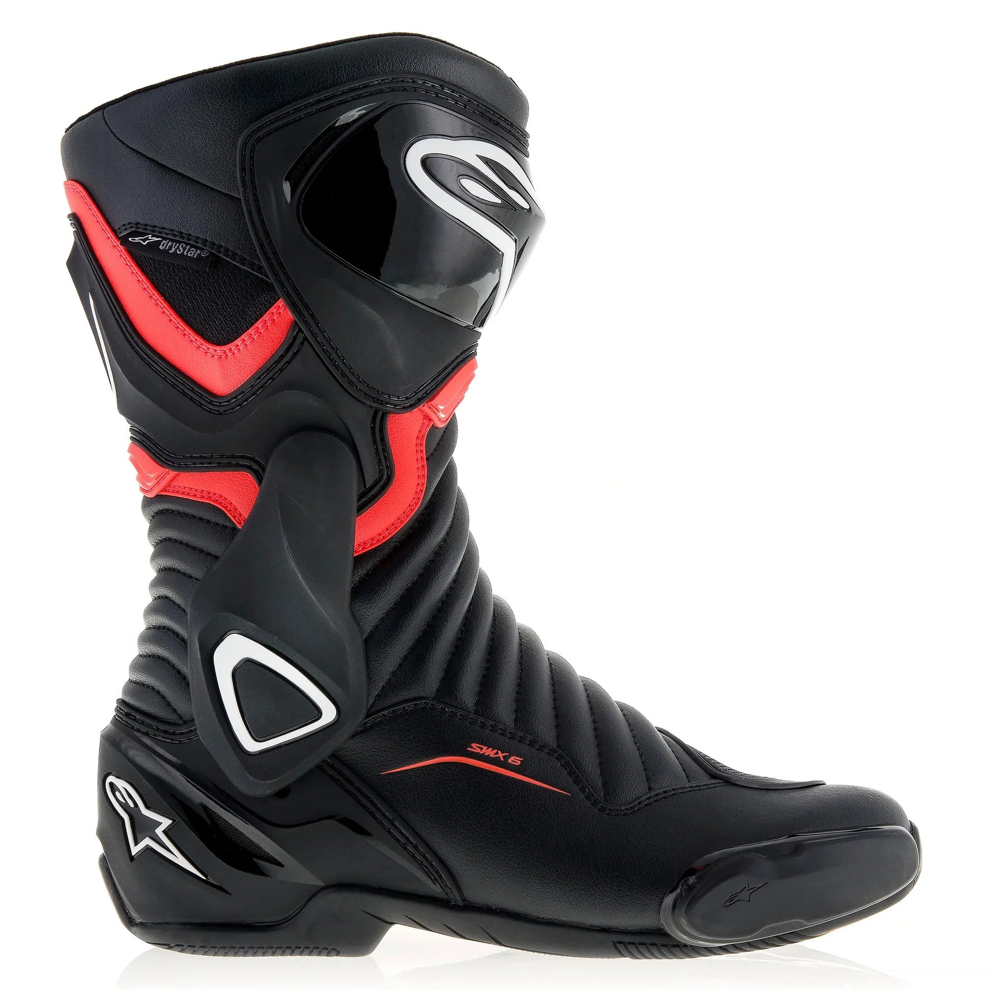 A waterproof and breathable performance boot for track and street that is anatomically profiled and packed with innovation, the evolved SMX-6 DRYSTAR® features the latest in Alpinestars' footwear design and development. Every component on this CE certified boot offers a crucial performance edge, in the form of protection innovations, improved ergonomics and comfort features.