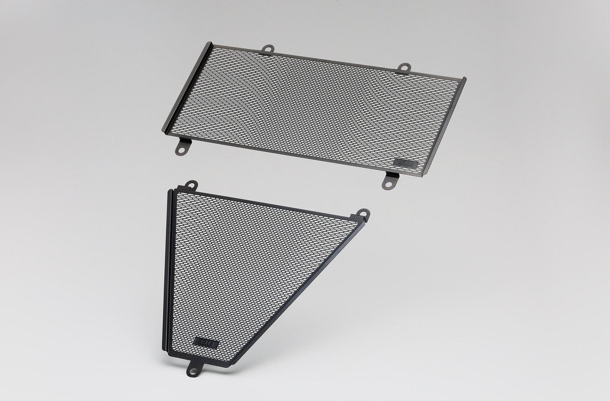Panigale radiator protector upper and lower set stepless wave pattern (Aera unique) is alive. Considering both the cooling effect and the protection effect, in the central part where there are many windings of the front wheels fine ami-eyes with high protection effect, the part where the running wind of both sides hits well, coarse eyes to prevent the cooling effect from being impaired It arranges steplessly. Hairline treatment is applied to the surface so that fine scratches are not noticeable.